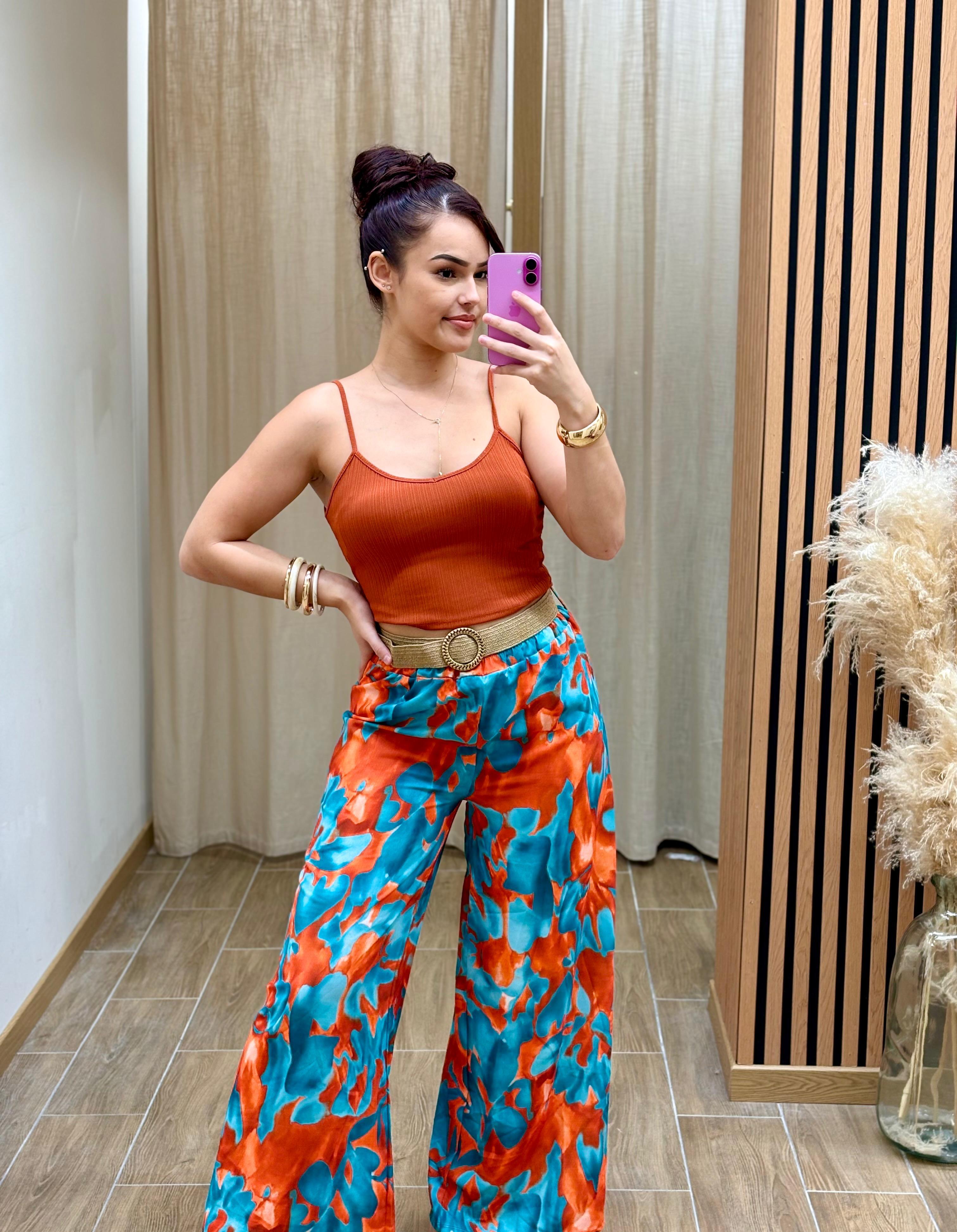💫 Un vent d’exotisme souffle sur ton dressing avec l’ensemble Kalinda. Composé d’un crop top noué et d’un pantalon fluide taille haute, ce duo à motifs imprime une allure solaire et affirmée. Sa matière légère et extensible t’accompagne avec confort tout au long de la journée, du brunch stylé aux sorties en ville.