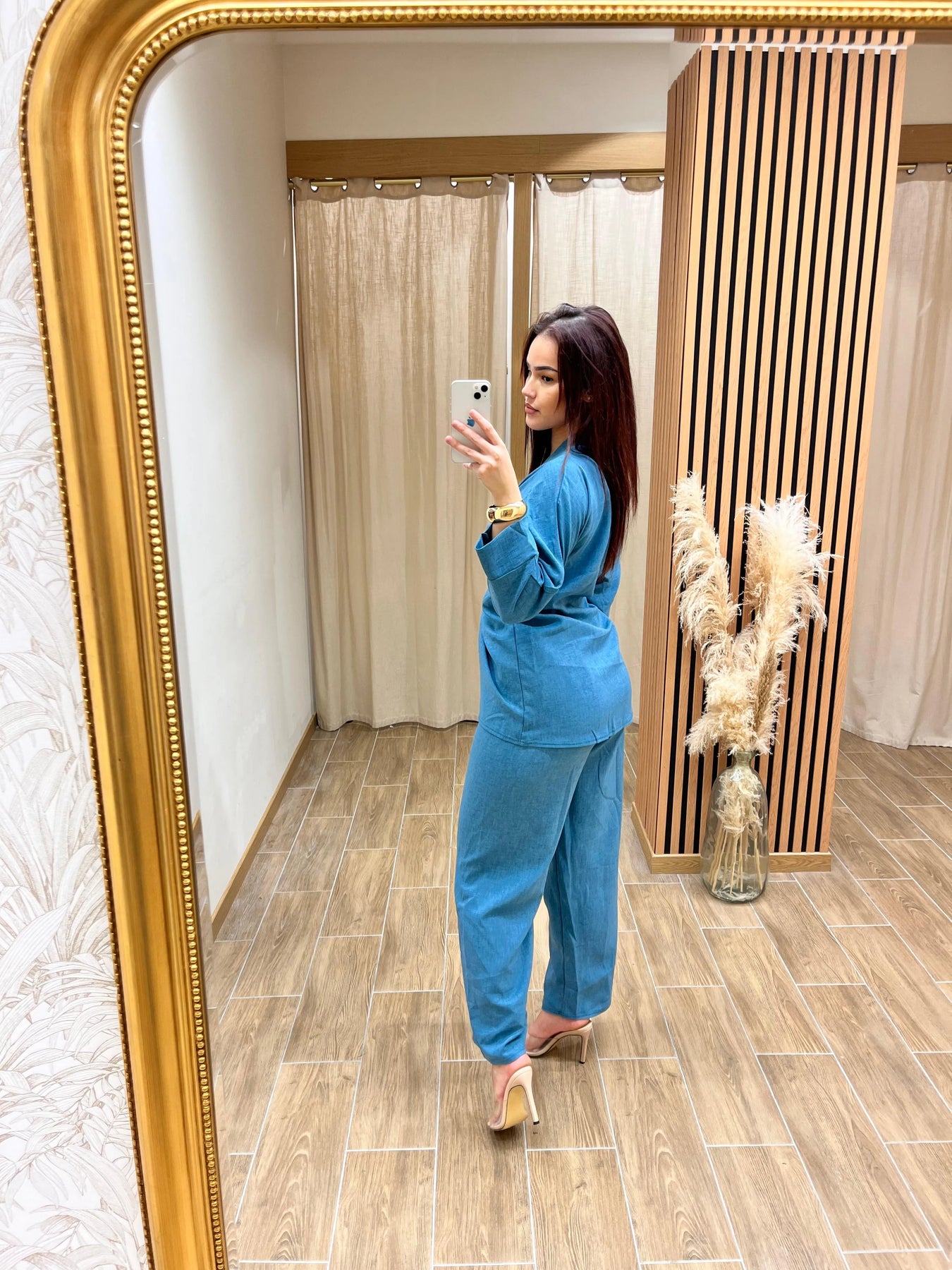 L’ensemble Kazima est une déclaration de douceur et d’élégance, pensé pour habiller les journées comme les soirées d’une allure fluide et confiante. Sa matière légère et extensible caresse la peau avec délicatesse, tandis que la coupe ample du haut et la ligne droite du pantalon sculptent une silhouette souple, naturelle et gracieuse. Une tenue parfaite pour conjuguer confort, féminité et raffinement en un seul geste.