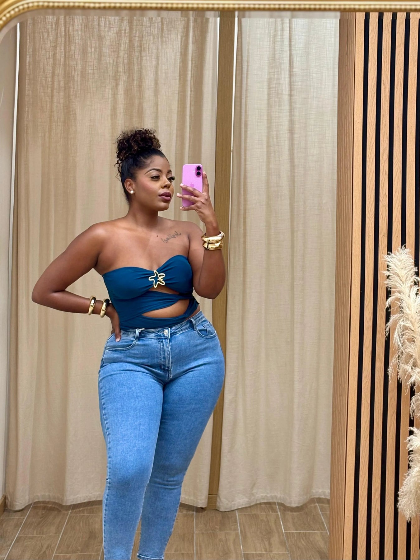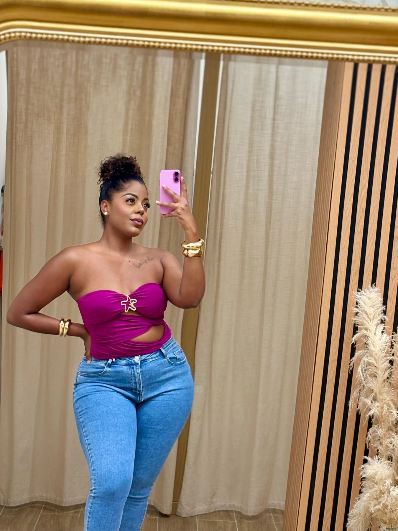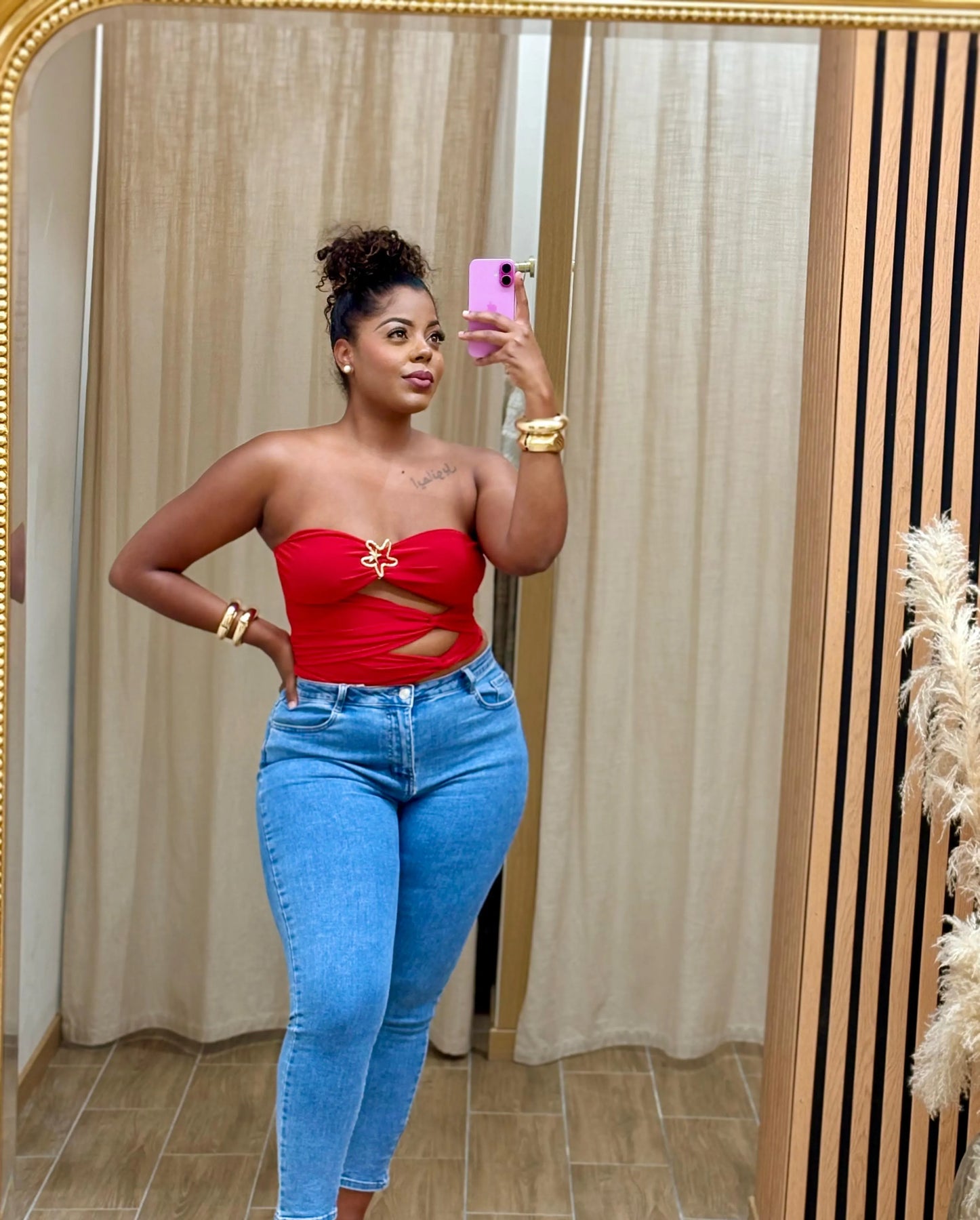 Audacieux et raffiné, ce bustier sublime la silhouette avec une élégance assumée. Son drapé délicat épouse les formes, tandis que le bijou central apporte une touche précieuse qui attire subtilement le regard. Idéal pour une soirée chic, un dîner romantique ou un événement estival où l’on veut briller avec confiance et féminité.
