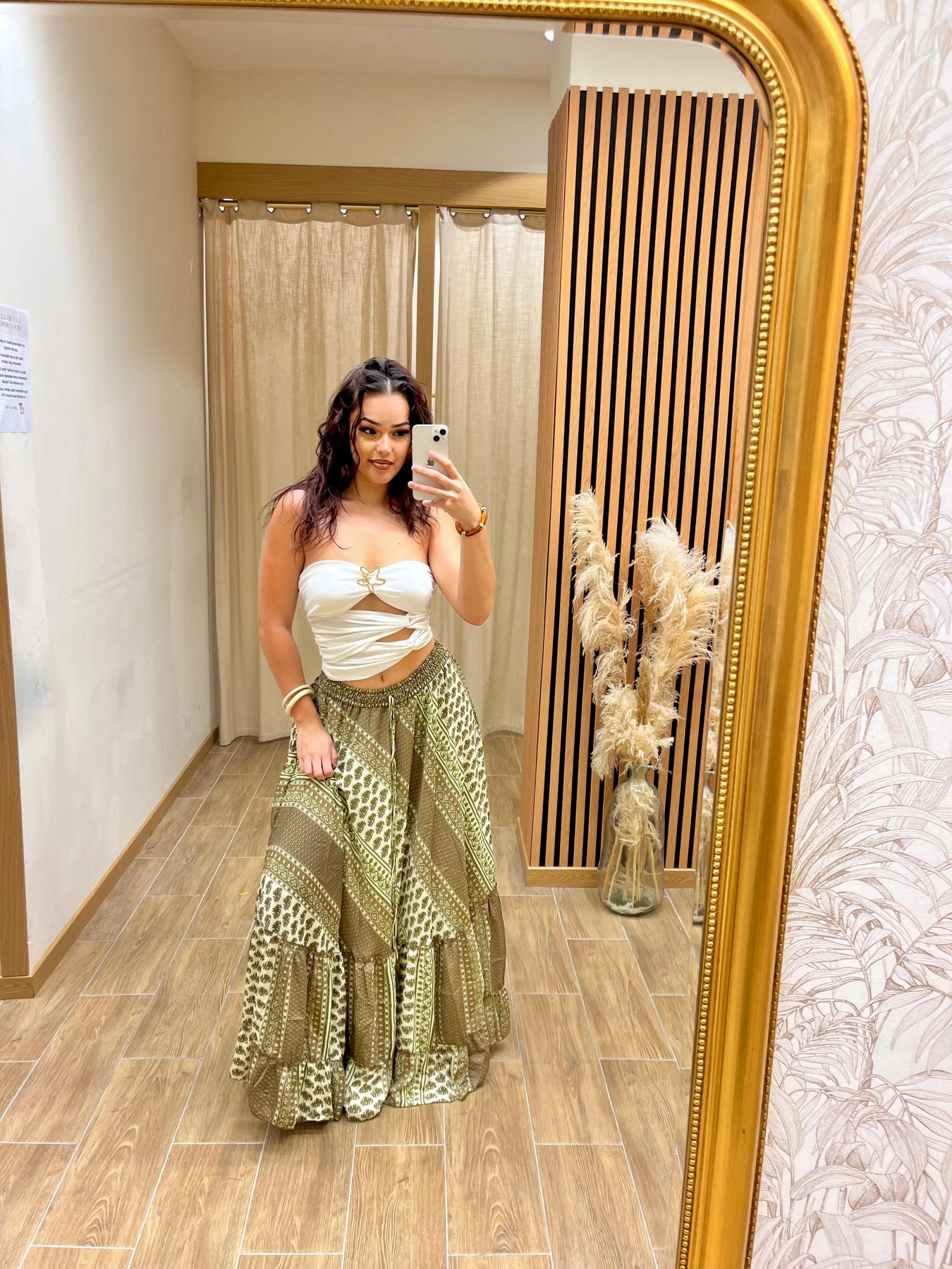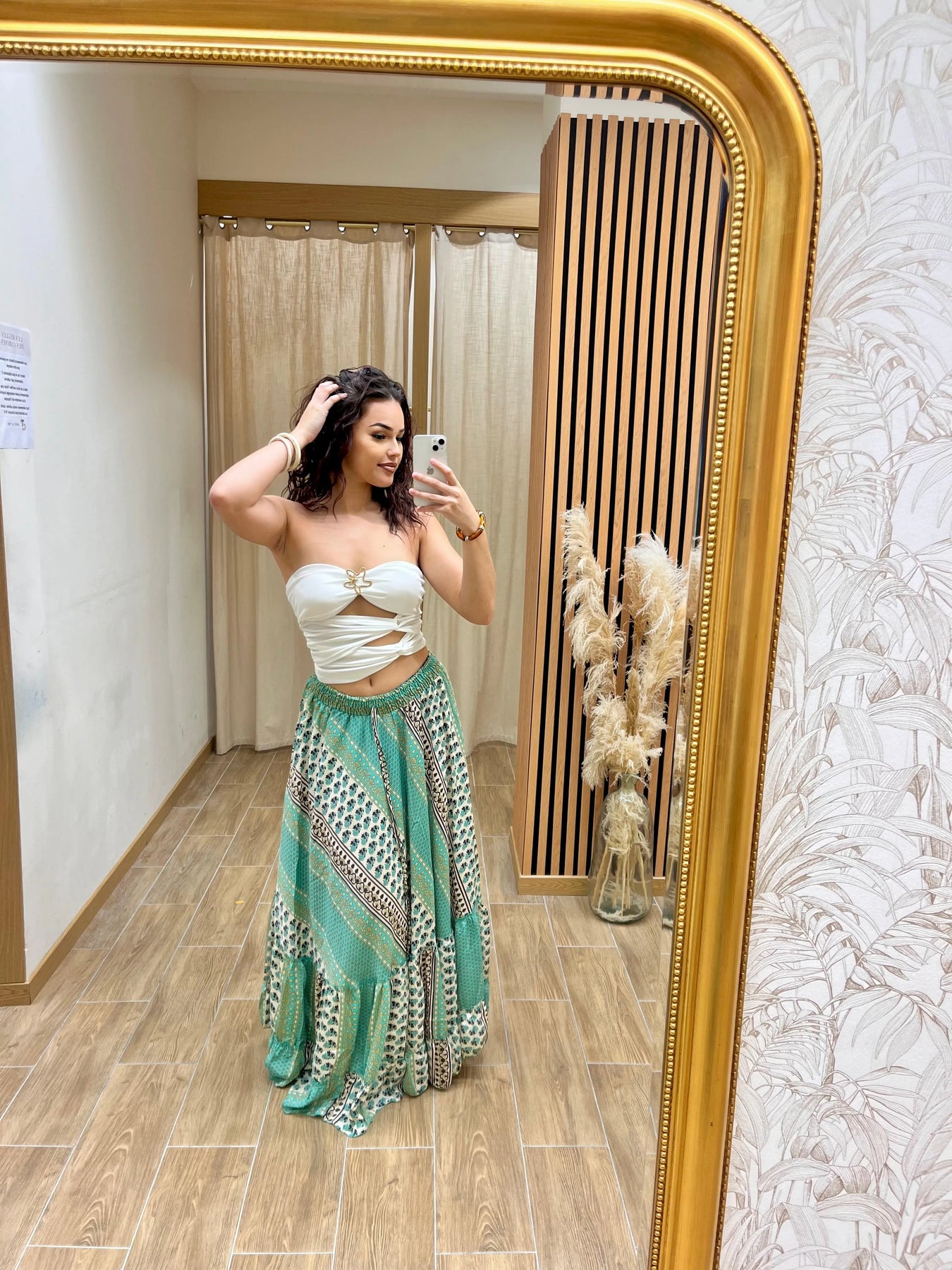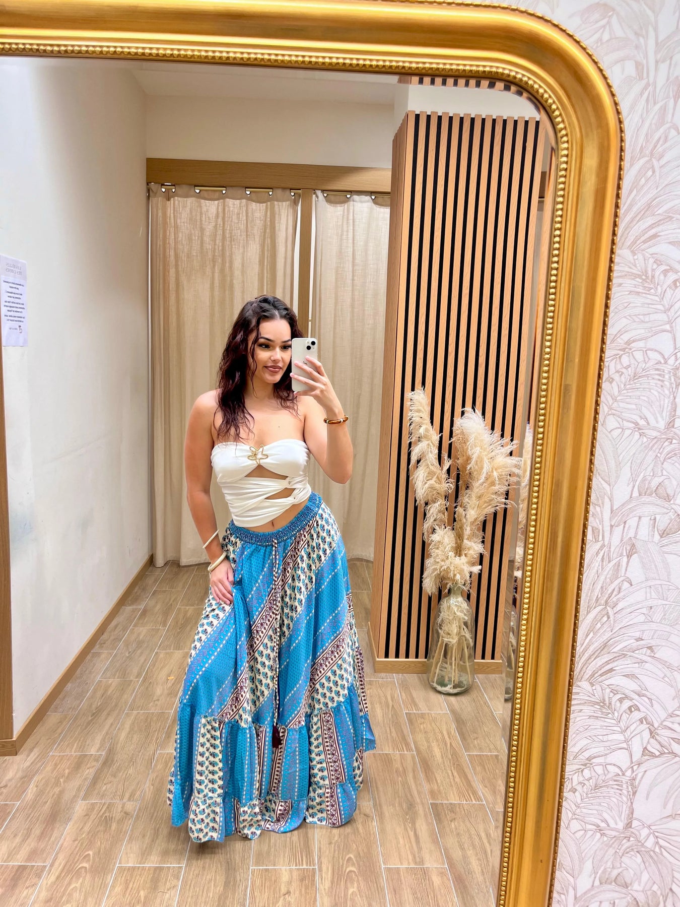 Libre et légère, cette jupe longue au charme bohème invite à la flânerie élégante. Sa coupe ample ondule à chacun de vos pas, insufflant un esprit voyageur et raffiné. Parfaite pour un brunch estival, une balade au bord de mer ou une escapade romantique, elle habille avec naturel tout en offrant un confort aérien.
