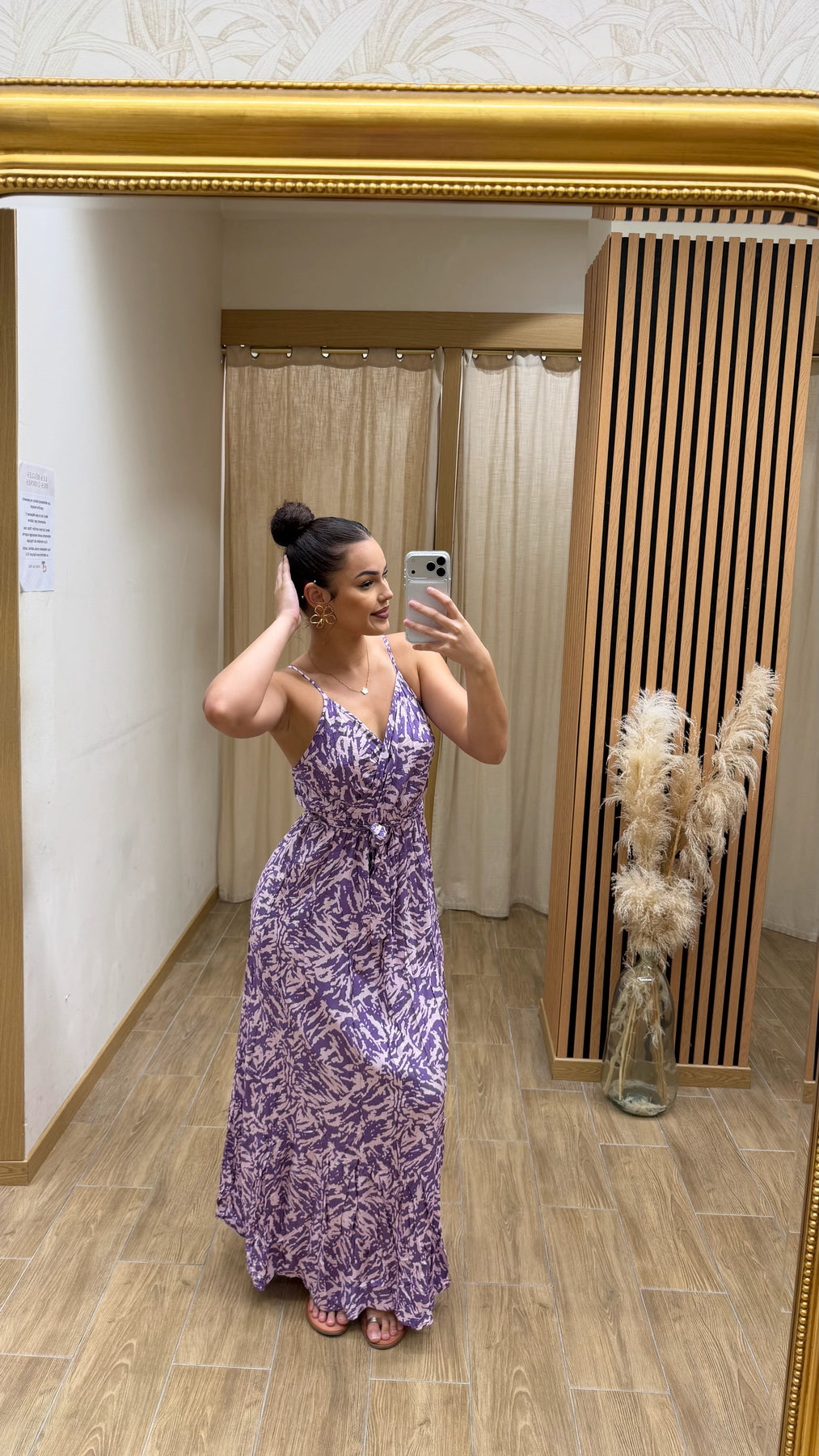 💫 Une robe longue fluide et féminine, pensée pour sublimer la silhouette avec douceur et élégance. Son décolleté en V met le buste en valeur, tandis que ses fines bretelles et sa taille délicatement marquée créent une allure légère et harmonieuse. Sa matière aérienne assure un confort absolu, idéale pour l’été, les vacances ou les journées ensoleillées.