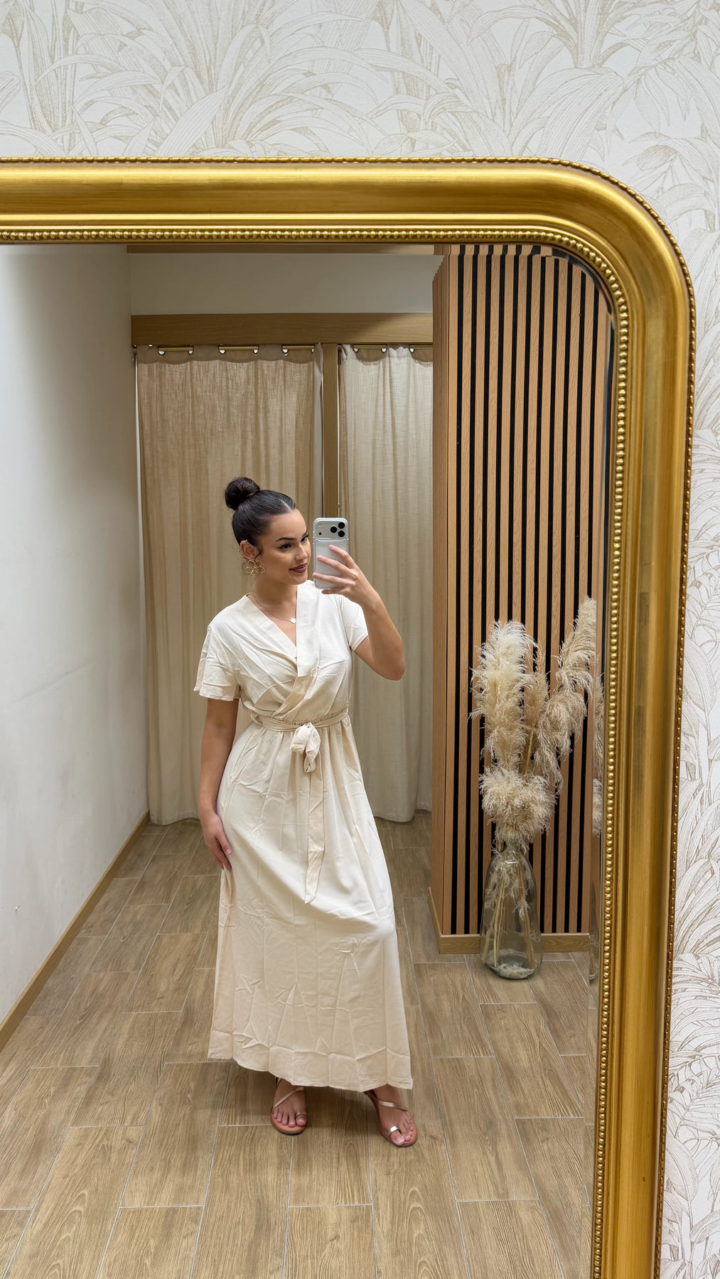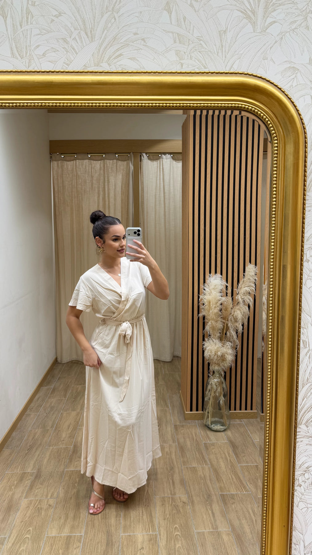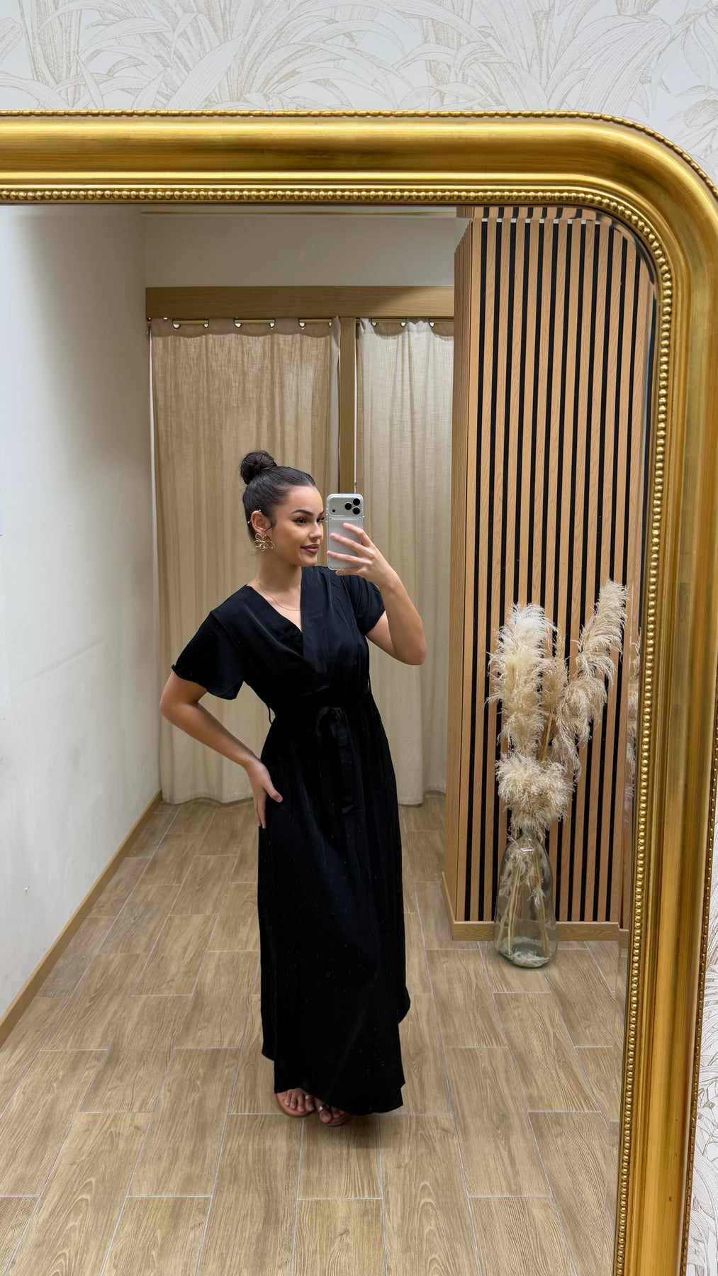 đ« Une robe longue fluide et fĂ©minine, pensĂ©e pour sublimer la silhouette avec douceur et Ă©lĂ©gance. Son dĂ©colletĂ© croisĂ© et sa ceinture Ă nouer marquent joliment la taille, tandis que sa coupe fluide assure un tombĂ© lĂ©ger et agrĂ©able Ă porter, parfaite pour les journĂ©es ensoleillĂ©es comme pour les soirĂ©es estivales.
