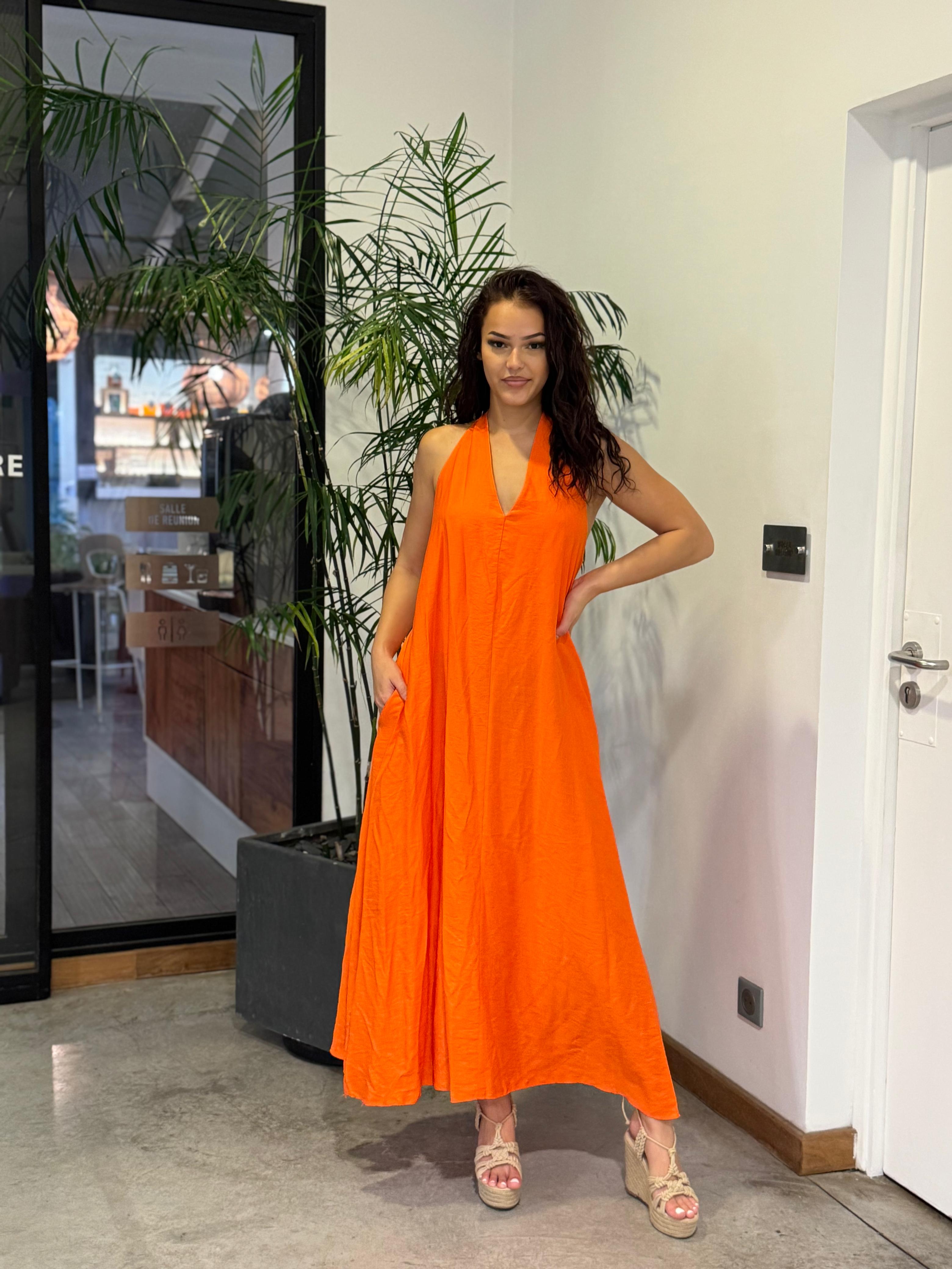 Sublime et audacieuse, cette robe midi au décolleté plongeant séduit par son imprimé inspiré des vagues. Son dos nu et sa coupe ajustée mettent la silhouette en valeur avec sensualité, tout en restant fluide et agréable à porter.