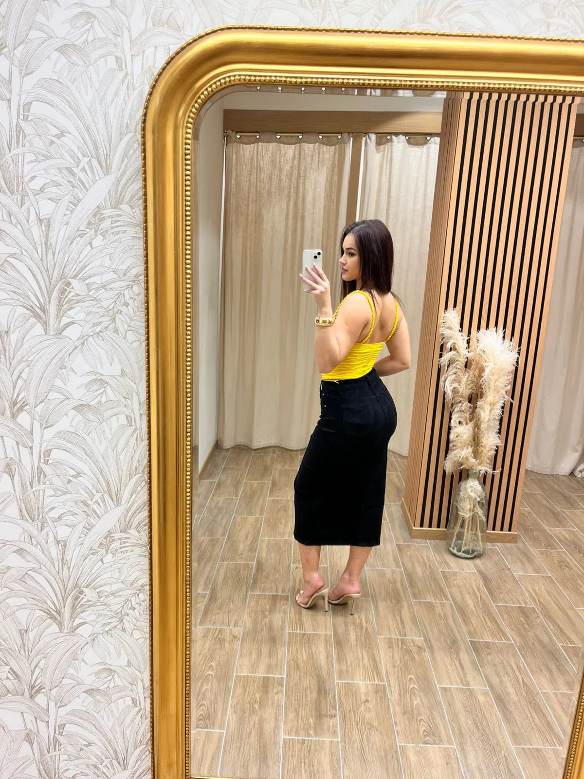 Vibrant et audacieux, ce top bustier jaune illumine la silhouette avec son coloris solaire et sa coupe flatteuse. Doté de fronces délicates à l’avant et de fines bretelles, il met en valeur le décolleté tout en assurant maintien et confort. Parfait pour dynamiser une tenue casual-chic ou accompagner une jupe élégante lors d’une sortie estivale.