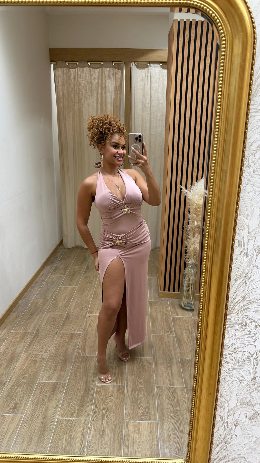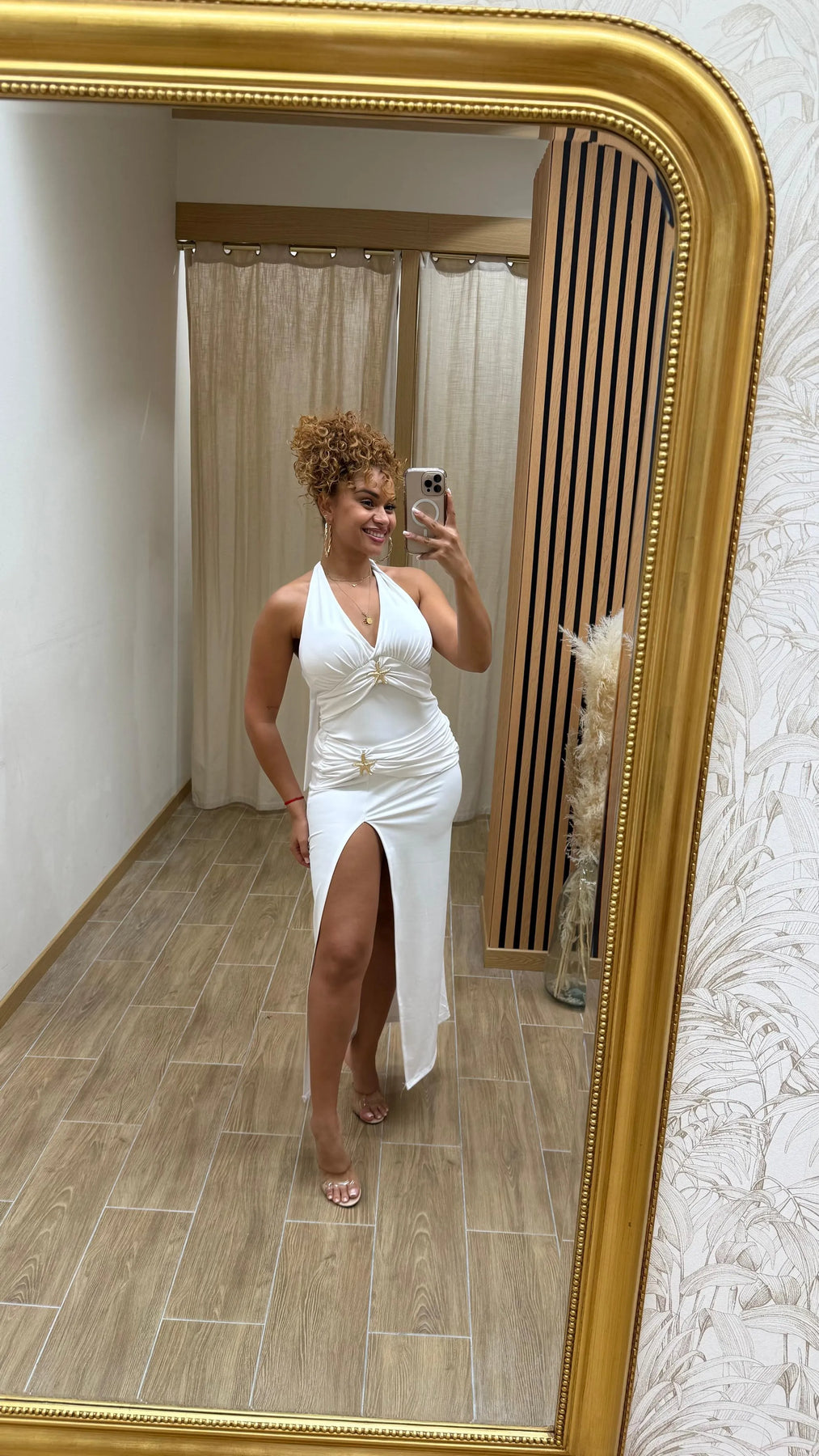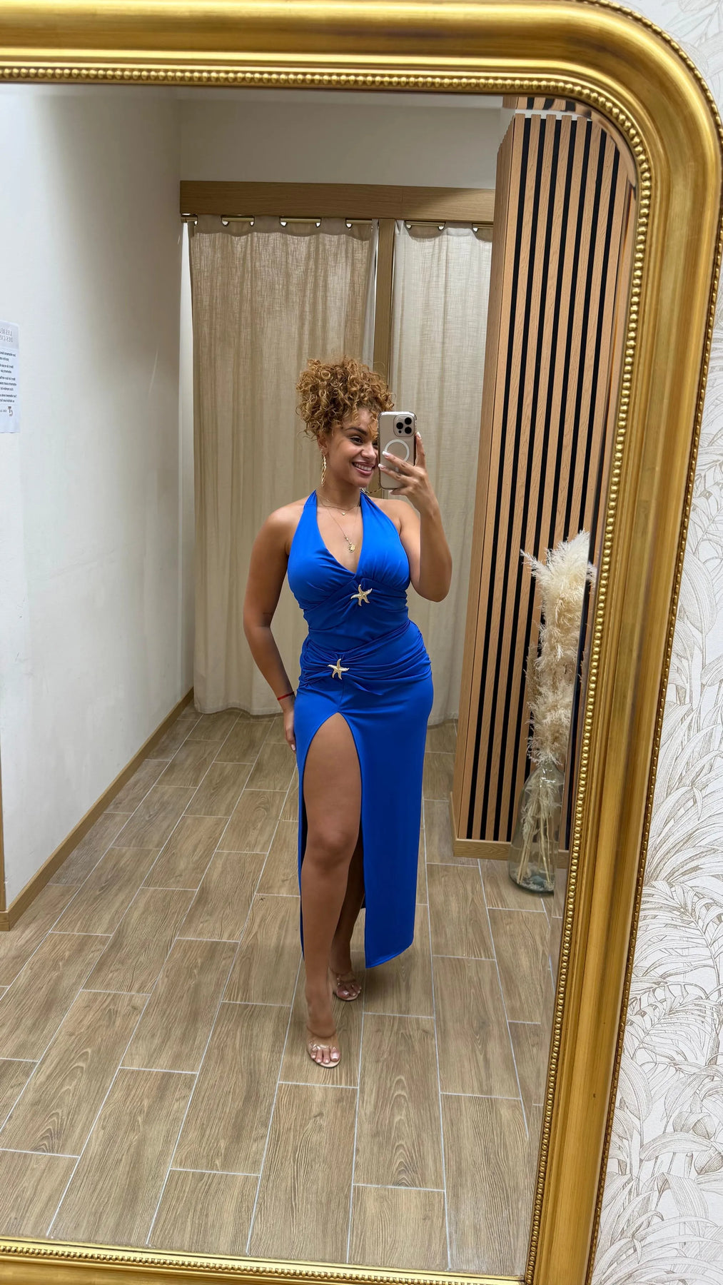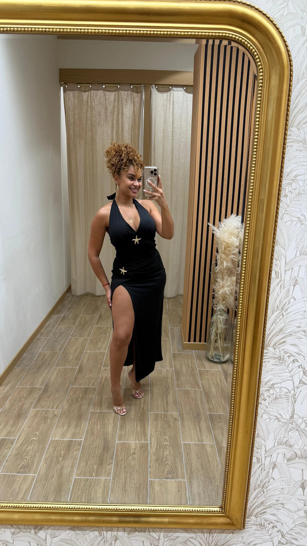 Audacieuse et sensuelle, cette robe longue met en lumière la féminité avec éclat. Sa coupe fluide épouse les courbes tout en laissant une liberté de mouvement irrésistible. Le décolleté plongeant et les détails raffinés subliment la silhouette, faisant de ce modèle une pièce maîtresse pour une soirée élégante, une cérémonie raffinée ou une escapade où l’élégance se vit pleinement.