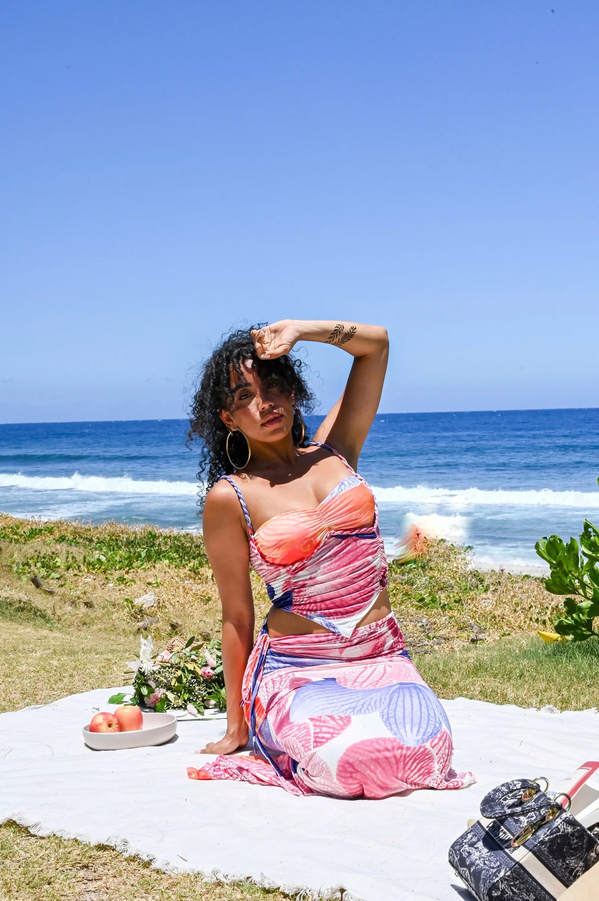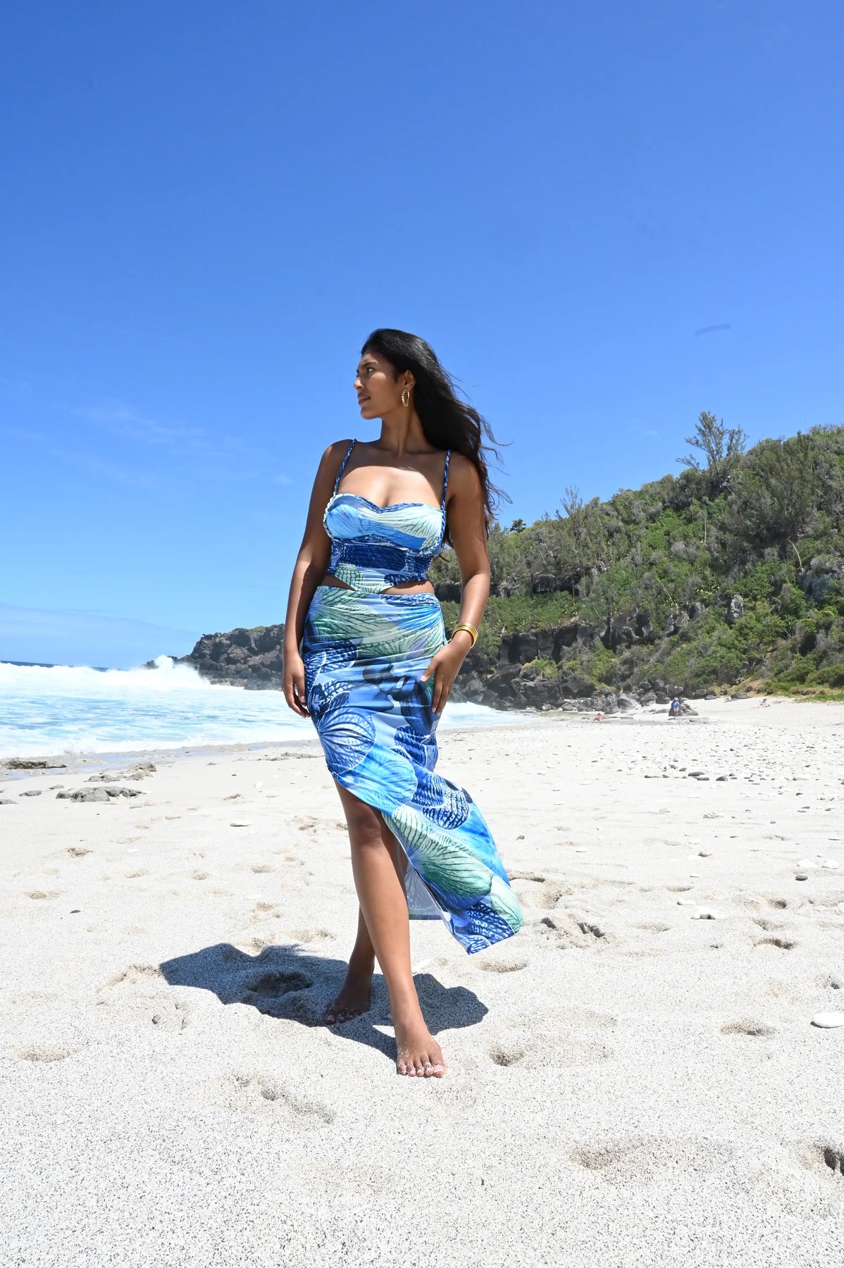 Vibrant et solaire, capture l’essence de l’été avec panache. Son imprimé tropical coloré apporte une énergie irrésistible, tandis que sa coupe près du corps sublime naturellement les courbes, sans en faire trop. Léger, confortable et résolument féminin, il vous accompagne avec grâce du bord de mer aux soirées estivales.