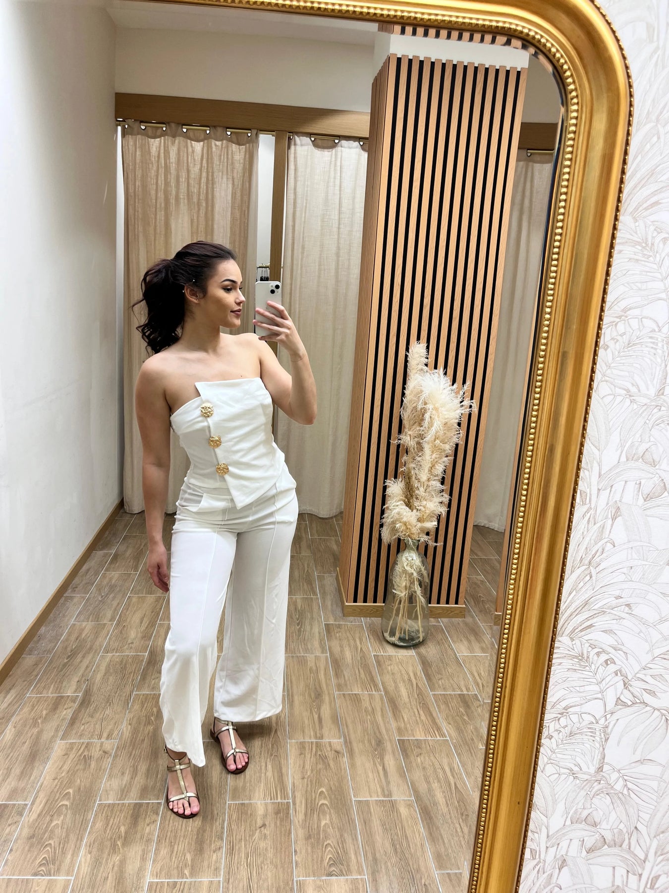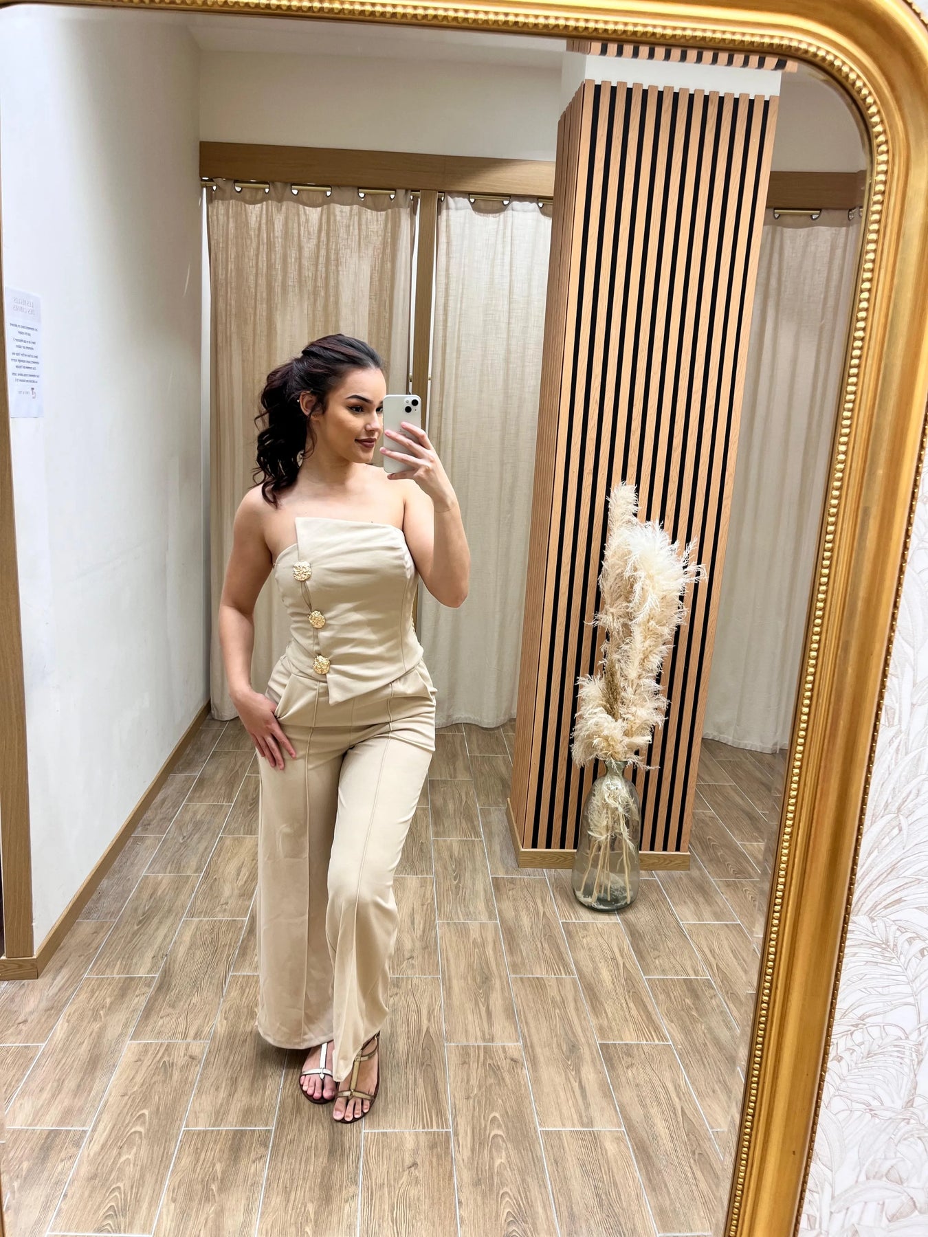 Élégant et intemporel, cet ensemble bustier pantalon sculpte la silhouette avec assurance et raffinement. Son allure moderne allie sensualité et confort, pour une présence qui attire naturellement les regards. Idéal pour une soirée chic, un cocktail entre amis ou une occasion où l’élégance se veut affirmée, il incarne l’équilibre parfait entre audace et sophistication.