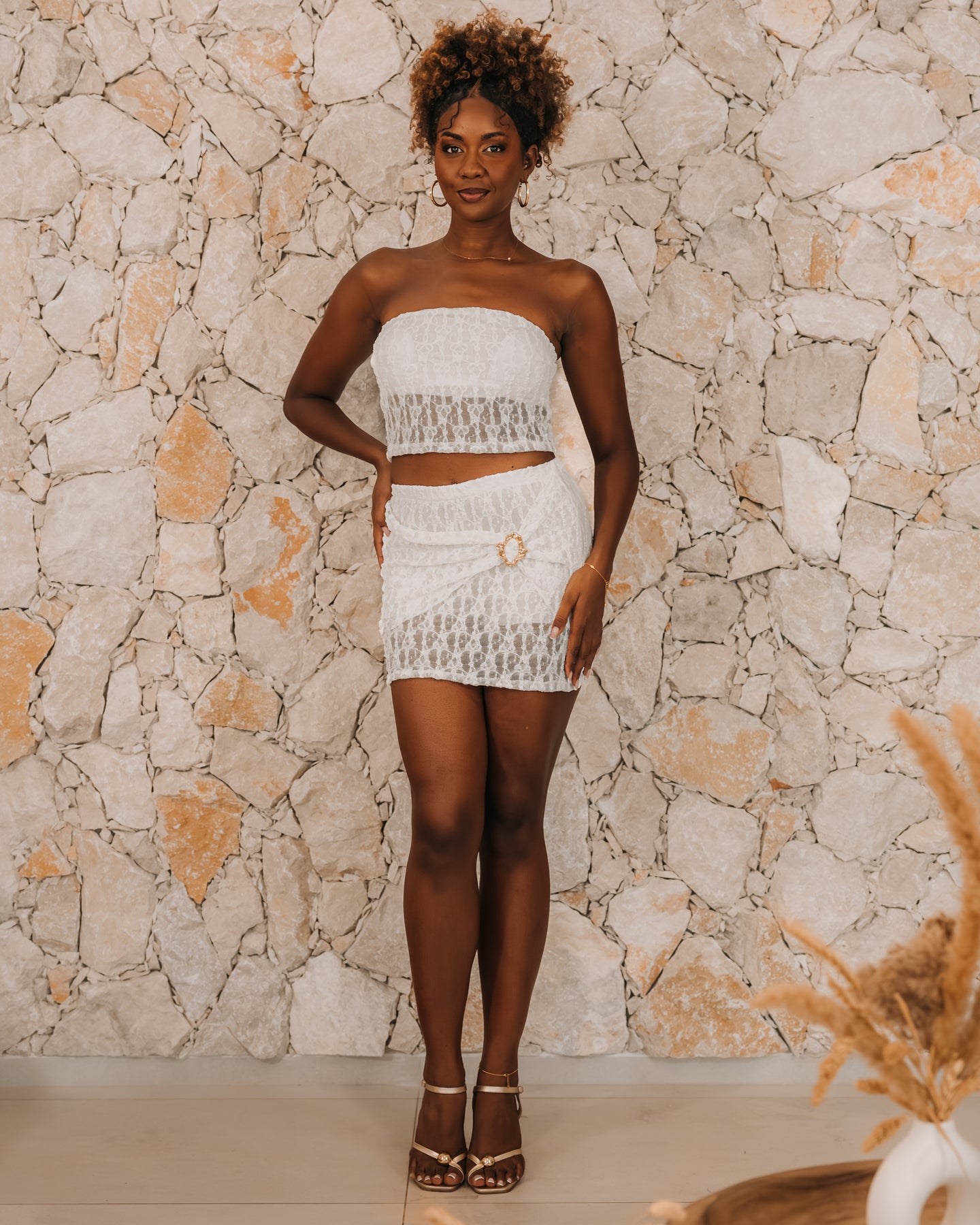 • Jupe drapée avec bijou décoratif à la taille