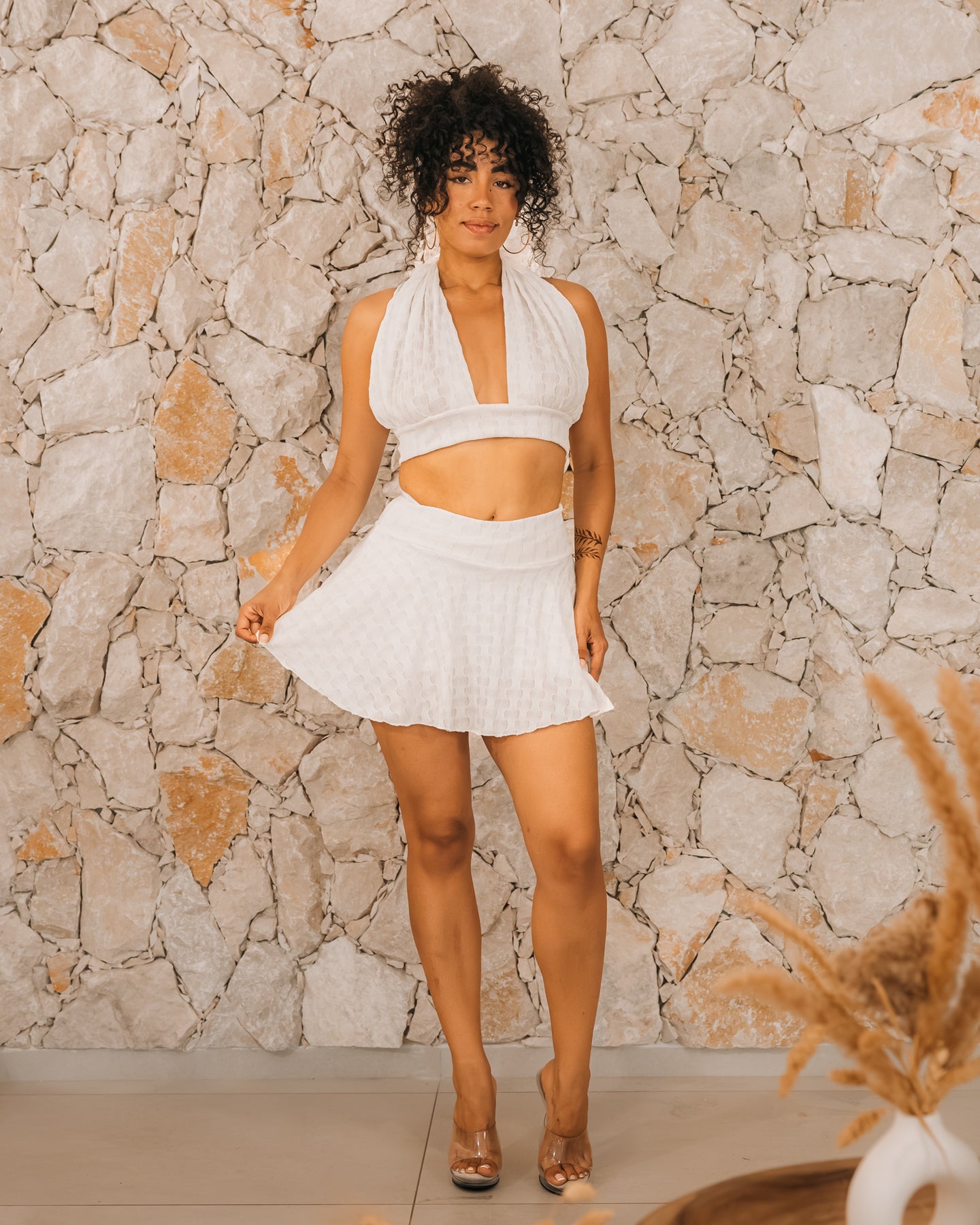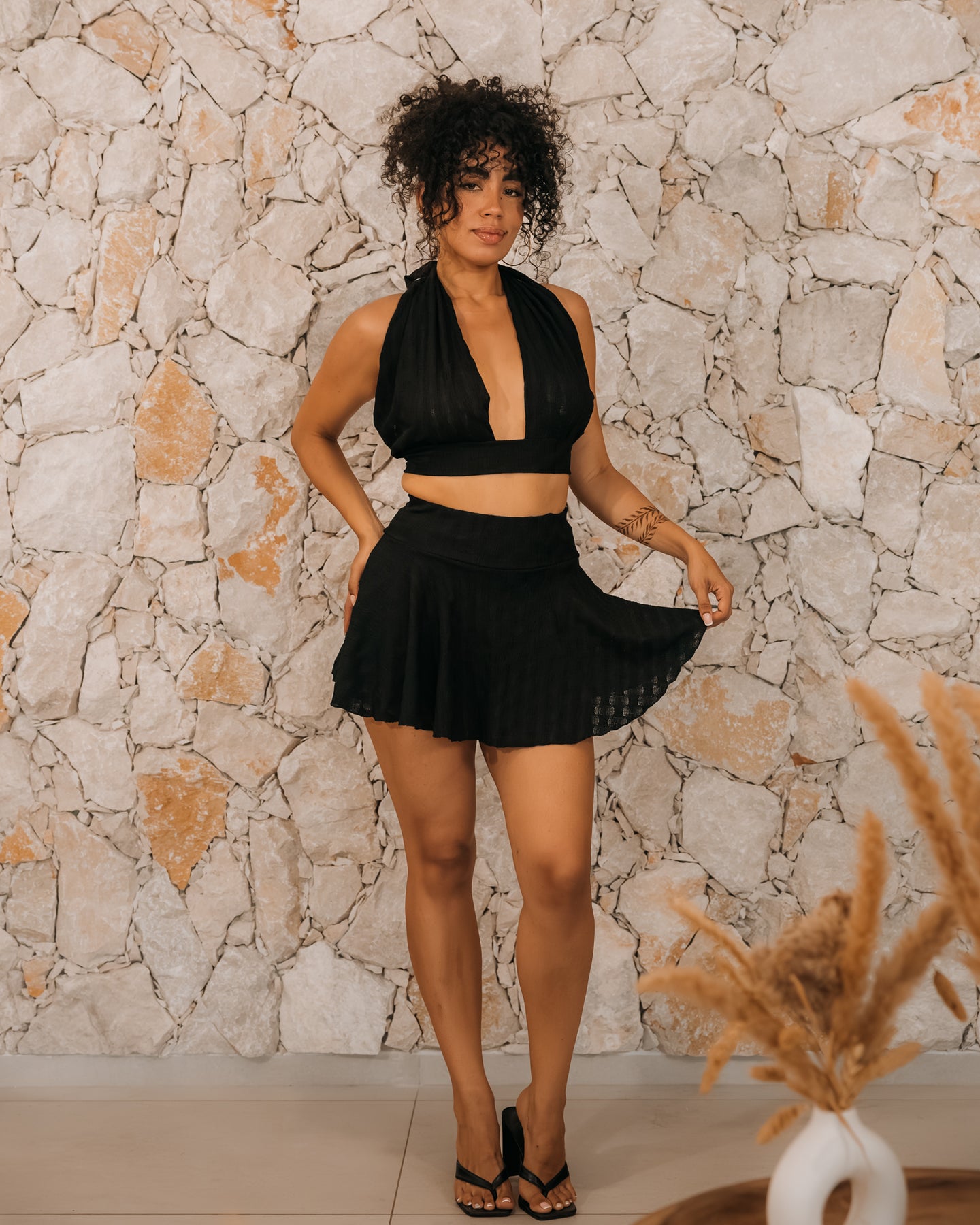 💫 Un ensemble deux-pièces sensuel et raffiné, pensé pour sublimer la silhouette avec élégance et audace. Son top à nouer autour du cou met en valeur le décolleté, tandis que sa jupe fluide et évasée apporte une touche féminine et légère. Idéal pour une soirée romantique, un dîner chic ou la Saint-Valentin.
