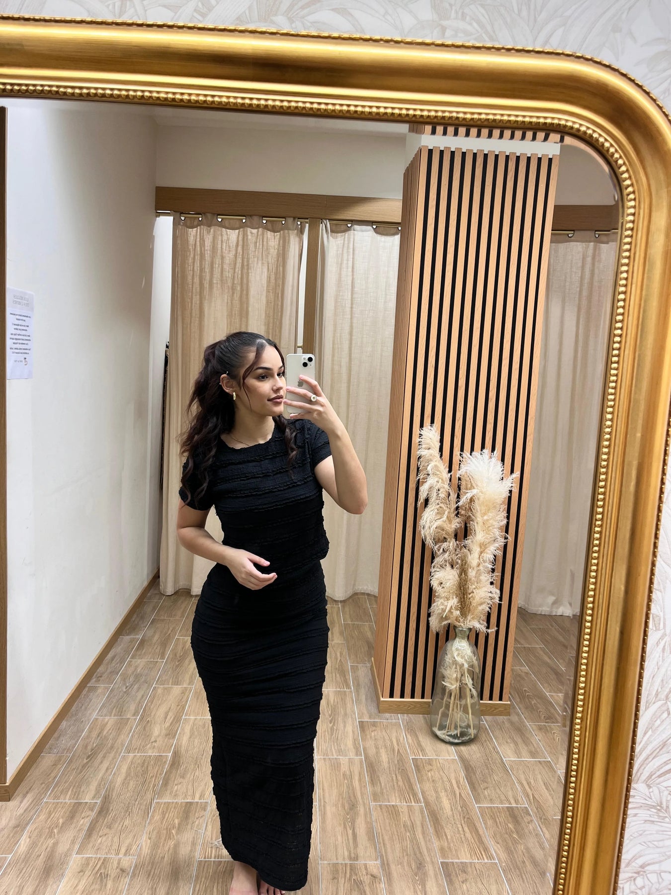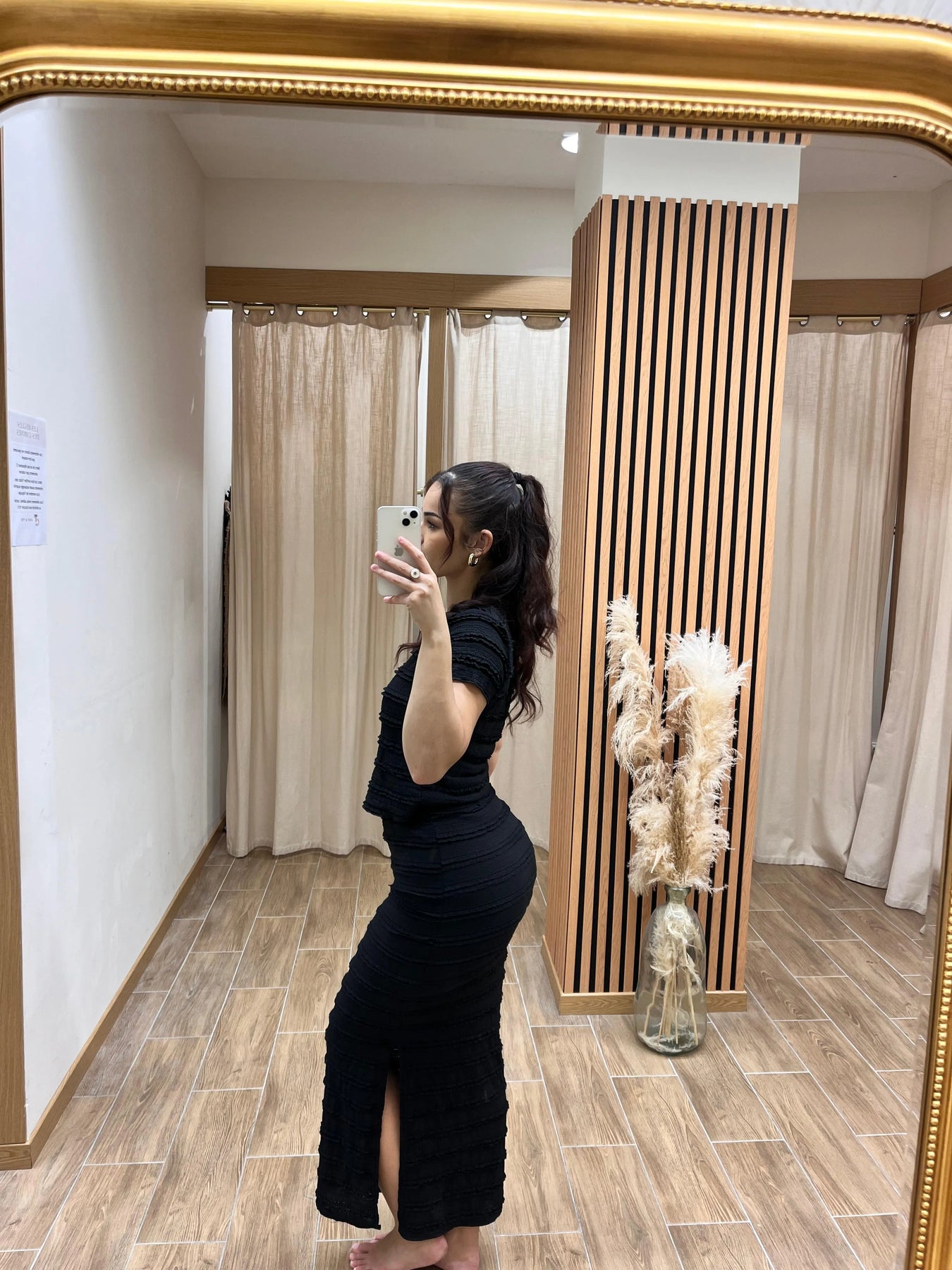 Audacieux et raffiné, ce set noir deux-pièces joue avec l’art subtil de la séduction. Le crop top court révèle la taille avec délicatesse, tandis que la jupe longue et ajustée allonge la silhouette avec élégance. Une tenue féminine et moderne, parfaite pour une soirée chic, un cocktail ou un événement où l’élégance rime avec assurance.