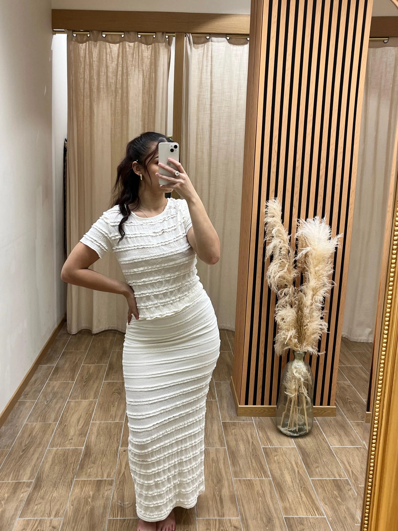 Ensemble deux-pièces : crop top + jupe longue