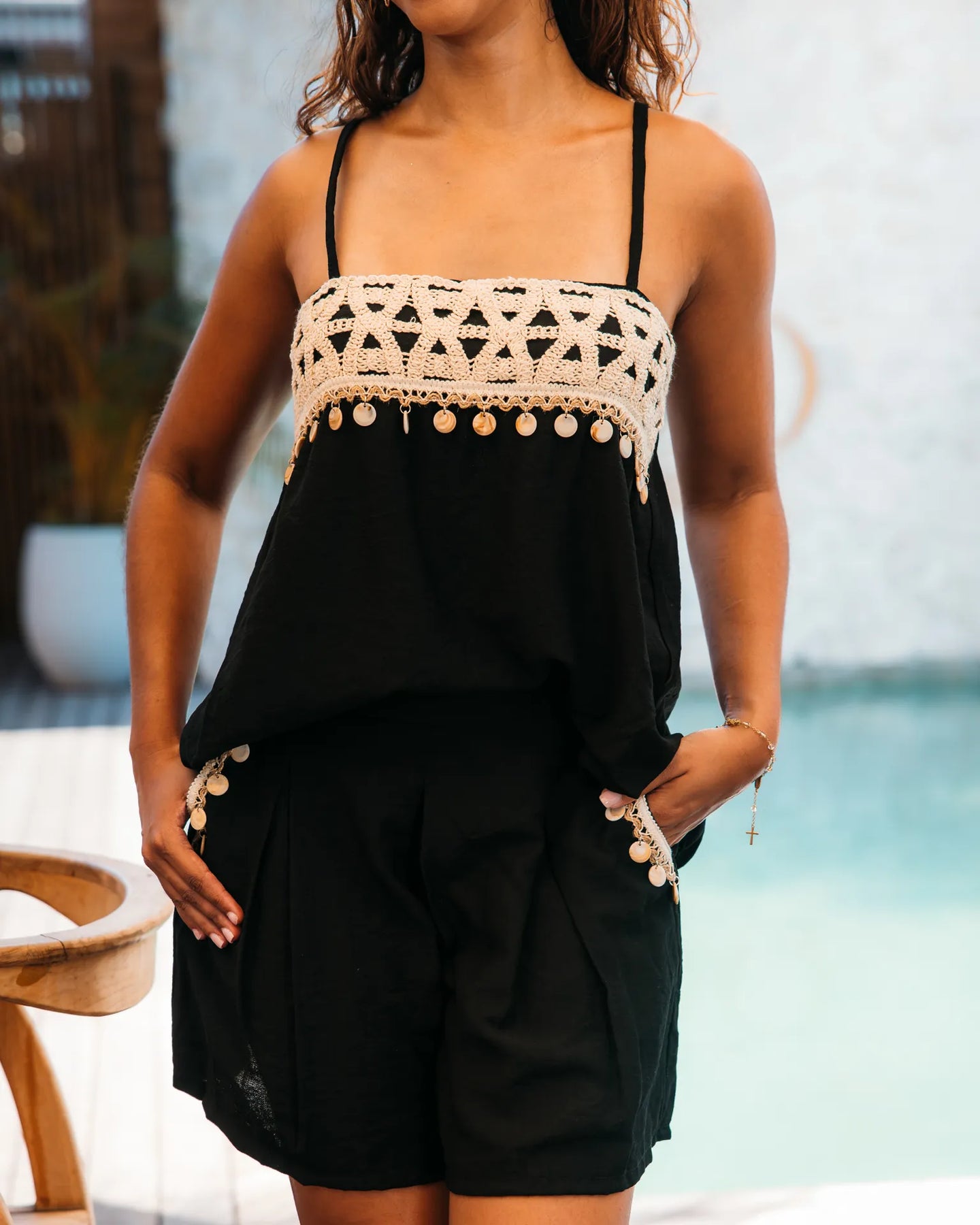 💫 Une combinaison short fluide et estivale, pensée pour allier confort et féminité avec une touche bohème chic. Son haut délicatement travaillé et sa coupe ample offrent une silhouette légère et naturelle, idéale pour les journées ensoleillées comme pour les vacances.
