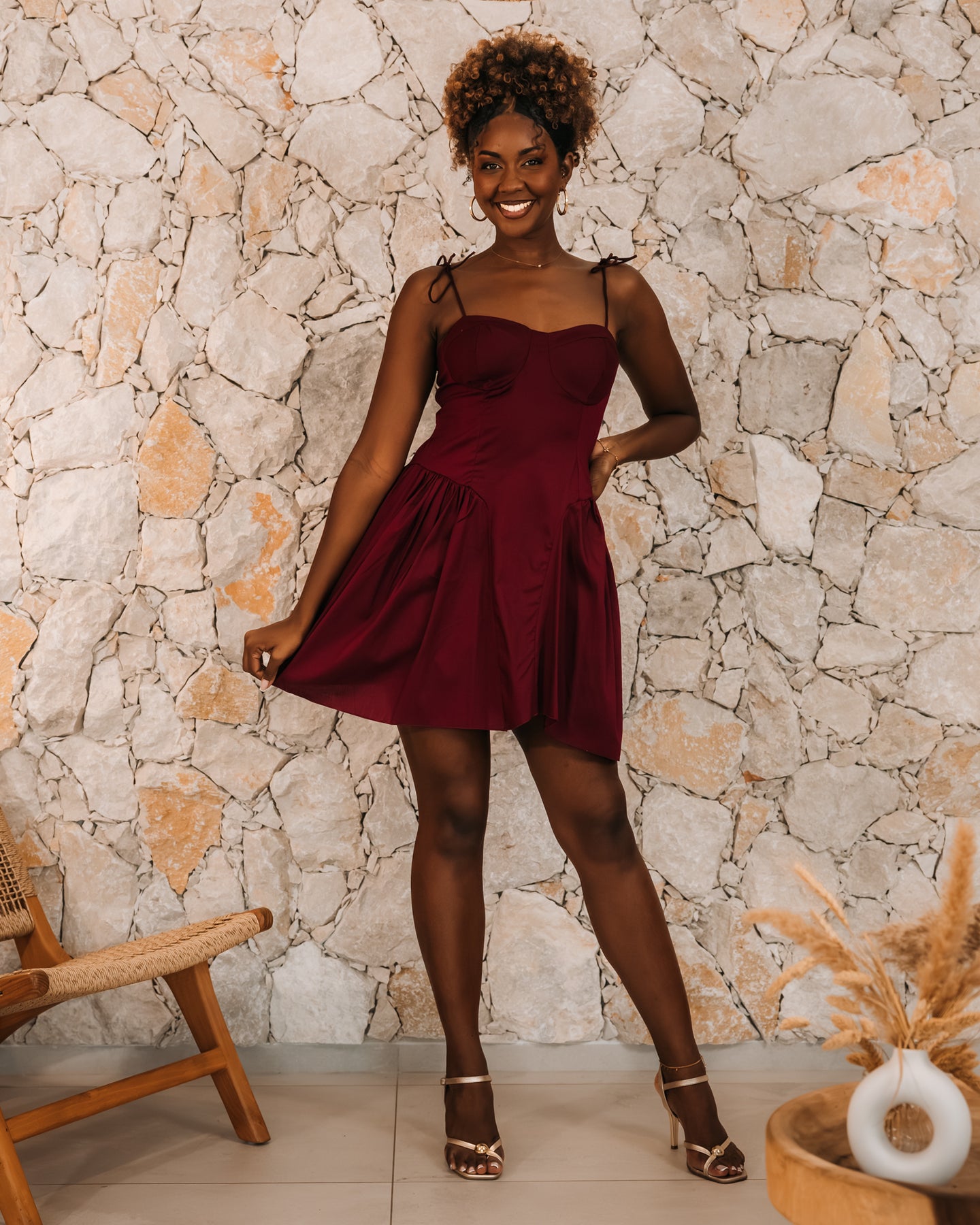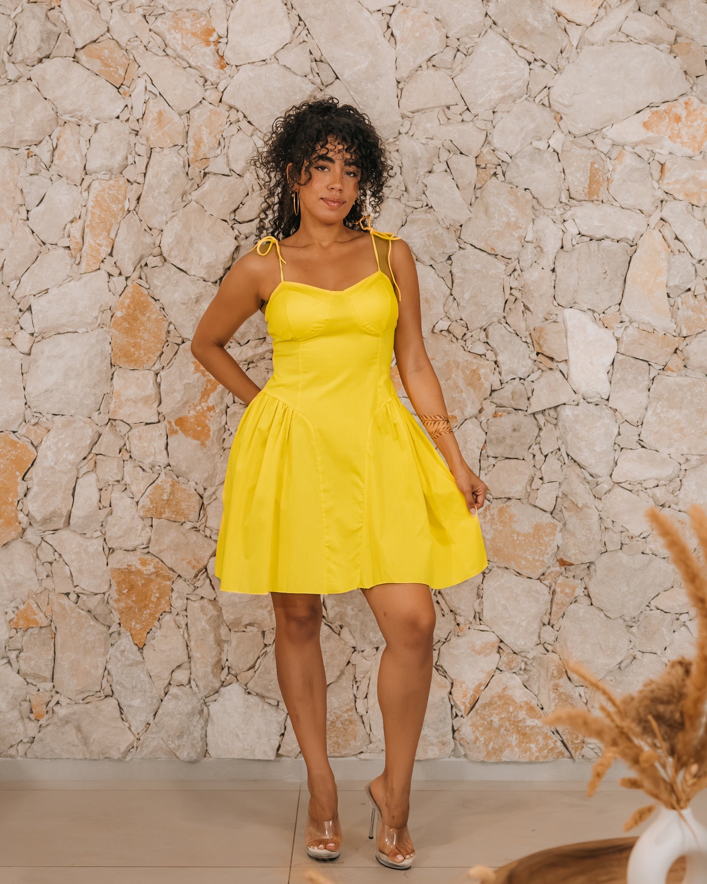💫 Une robe courte lumineuse et féminine, parfaite pour illuminer votre silhouette avec fraîcheur et élégance. Sa coupe évasée, son bustier structuré et ses fines bretelles à nouer offrent un look à la fois chic et estival, idéal pour les beaux jours comme pour vos soirées d’été.