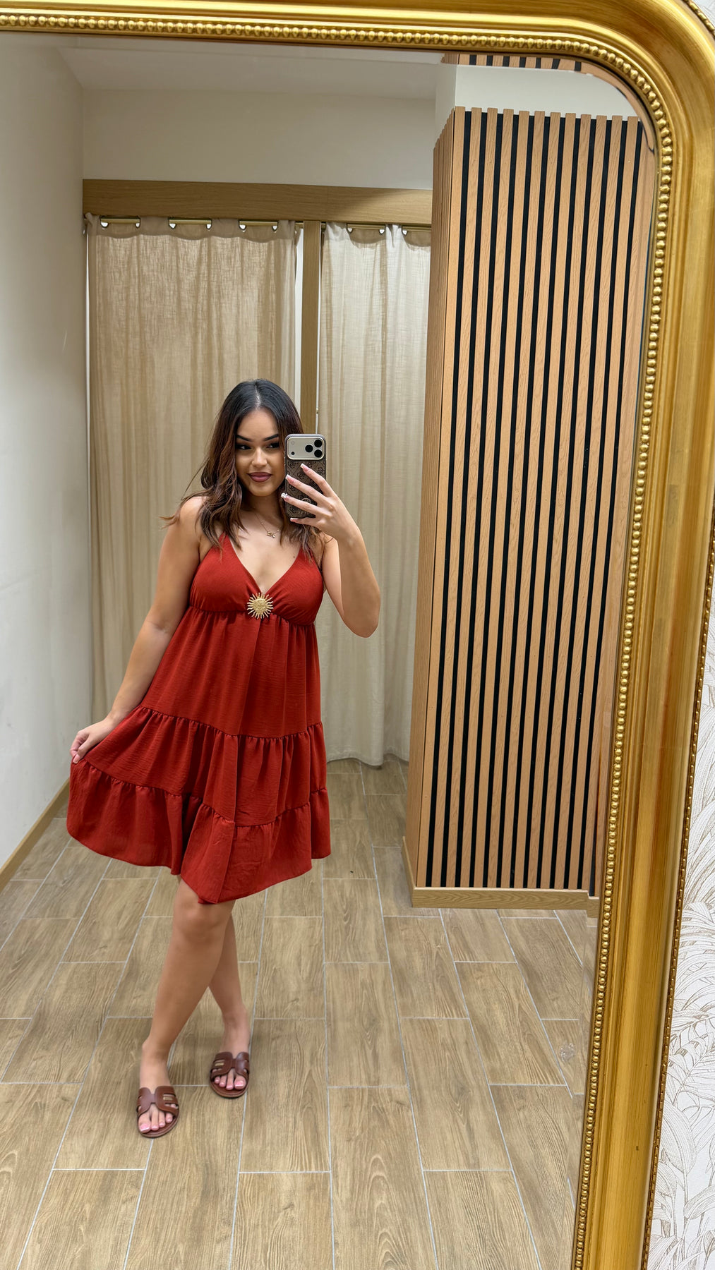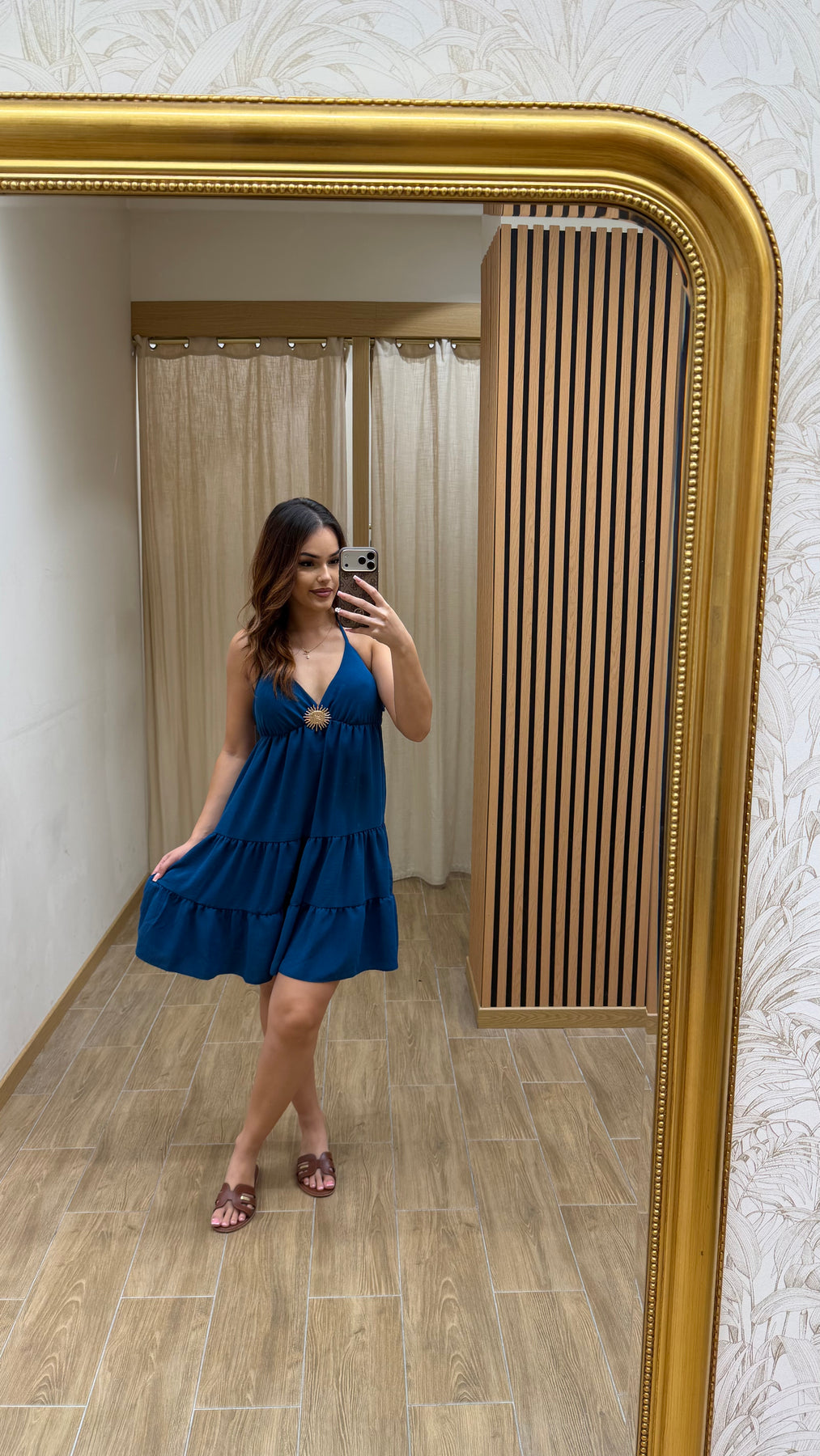 💫 Une robe courte fluide et féminine, idéale pour une silhouette légère et estivale. Sa coupe évasée à volants et son décolleté en V apportent une allure douce et naturelle, parfaite pour les journées ensoleillées comme pour les moments détente.